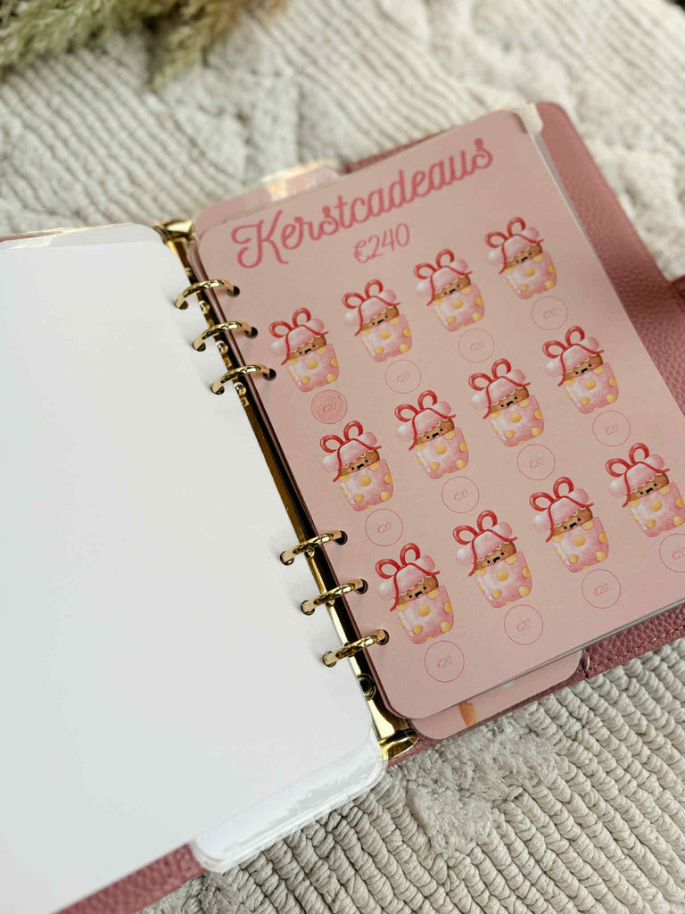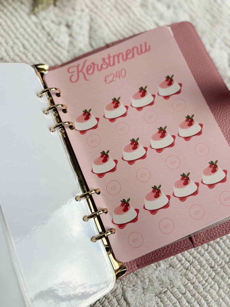 De Kestchallenge Deluxe Roze bevat maar liefst 4 challenges: Kerstcadeau's (€240), Kerstdecoratie (€60), Kerstmenu (€240) en Kerstdrankjes (€120). Elke challenge heeft dus een bepaald bedrag dat je kan sparen.