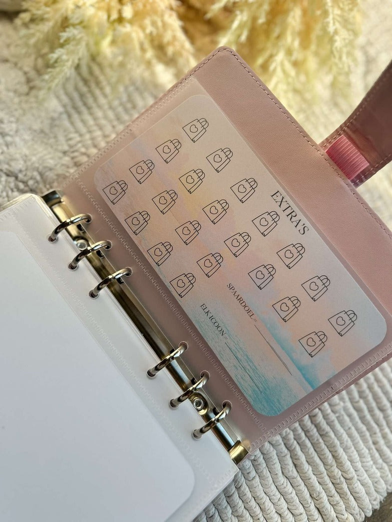 Essentieel is natuurlijk een mapje om je geld en challenge in te bewaren. Deze kan je opsmukken met leuke accessoires.