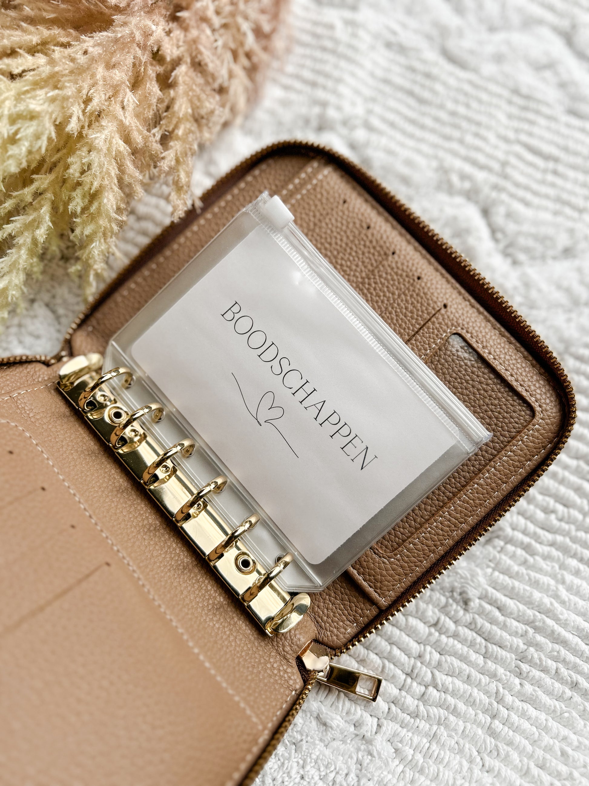 Essentieel is natuurlijk een A7 ritsmap en A7 ritszakjes om je centen en budgetkaartjes in te bewaren. Je mapje kan je opsmukken met leuke accessoires.